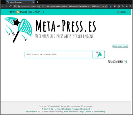 - To protect your privacy : Meta-Press.es does not monitor your usage (your requests don't reach our servers, we don't need servers at all), and protects you against ads and newspapers trackers