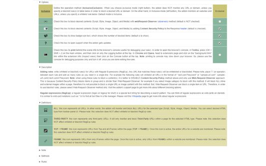 f) Choose desired blocking engine, WebRequest Observer or Content Security Policy from the options page.