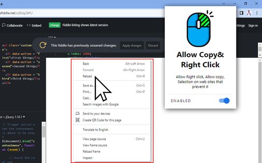 Allow Right click, Allow copy, Selection on web sites that prevent it
