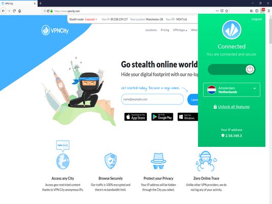 Download VPNCity and connect to major cities across the globe. So, what are you waiting for, go stealth online worldwide today!