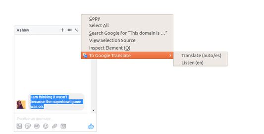 This extension creates a context menu item in Firefox. When you click on this menu item, the previously selected text is sent to Google Translate for translating or to Google TTS for listening pronunciation. You can setup the default languages for translation on the options page.
