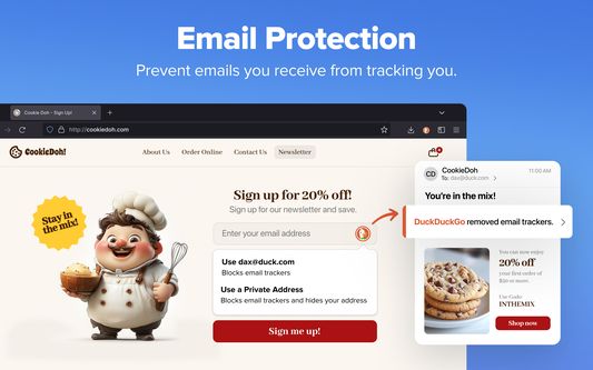 Secure Your Email (Optional): Use Email Protection to block most email trackers and hide your existing email address with @duck.com addresses.