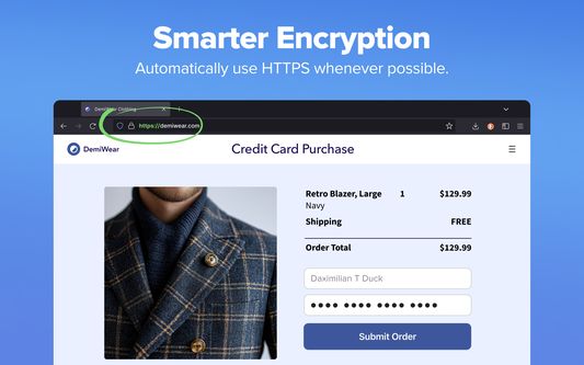 Automatically Enforce Encryption: Shield your data from network and Wi-Fi snoopers by forcing many sites to use an HTTPS connection.