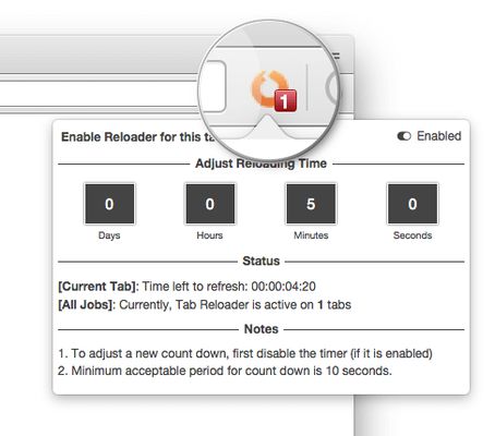 An easy-to-use tab reloader with custom reloading time settings for individual tabs